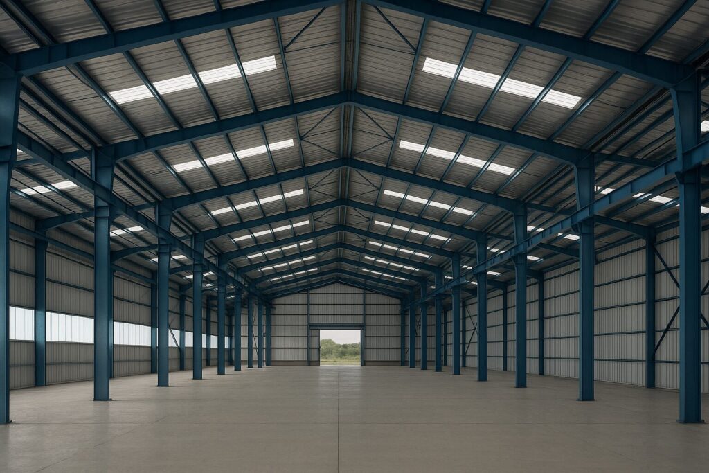 • دهانه و ارتفاع سوله: هرچه دهانه بزرگ‌تر باشد، مصرف فولاد بیشتر و هزینه بالاتر است.